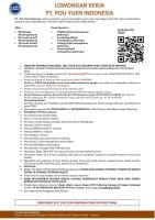 - Mengirimkan dokumen lamaran (nama ditulis sesuai KTP) melalui PT POS Indonesia (Kantor Pos) PT POS terdekat dengan alamat PO BOX 123 PT Pou Yuen Indonesia Kab. Cianjur